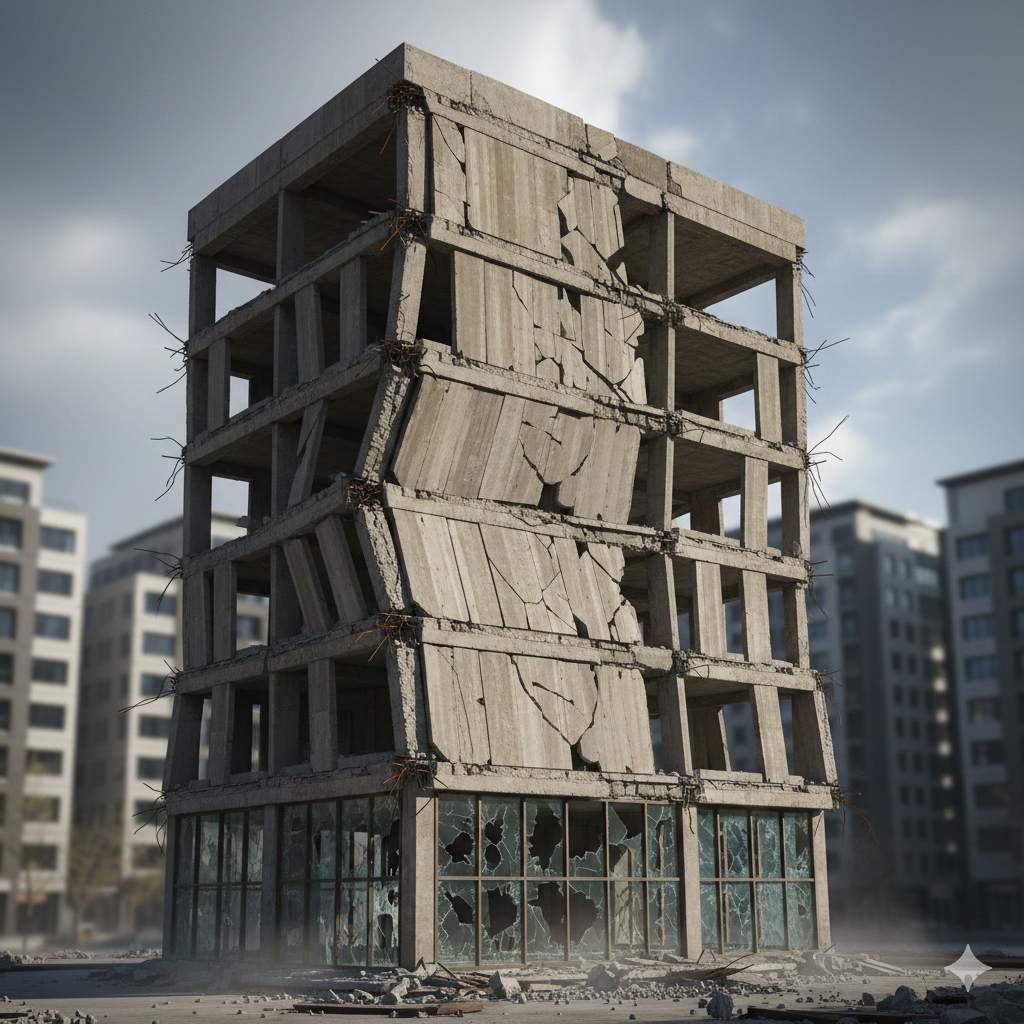 地震が発生した際、建物が「ただ揺れる」のではなく、コマのように「回転しながら壊れる」現象があることをご存知でしょうか。これが、耐震設計において最も警戒すべき事象の一つである**「ねじれ(捩れ)破壊」**です。