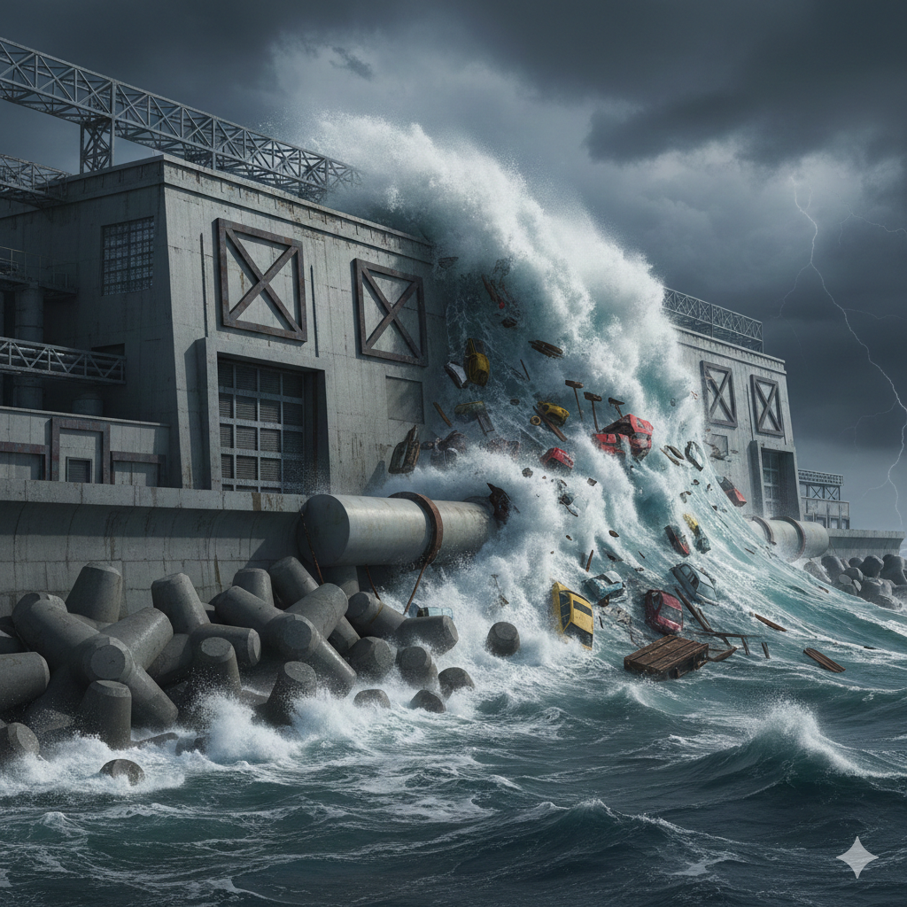 津波対策において重要なのは、単に「浸水を防ぐ」ことだけではありません。押し寄せる水の巨大な「水圧」と、瓦礫や車両が衝突する「漂流物」という、通常の耐震設計では想定外の衝撃にどう立ち向かうかです。本記事では、沿岸部拠点の存続を左右する、津波荷重への備えについて解説します。