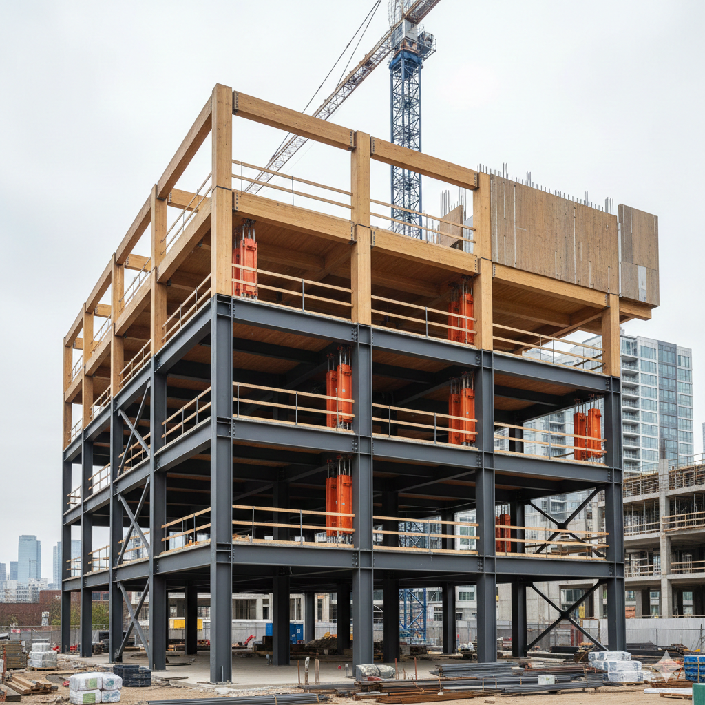 🏗️ 「鉄骨+木造」ハイブリッド構造の耐震性:中大規模建築物における新素材導入の課題と解決策