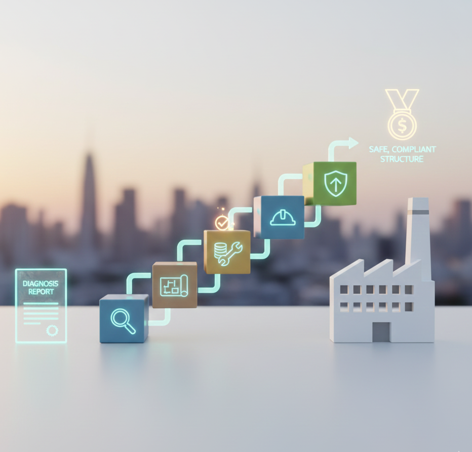 本記事では、プロの耐震コンサルタントの視点から、**耐震診断報告書を受領してから、建物の安全性を確保し、補助金を獲得するまでの「5つの標準的な流れ」**を、論理的かつ専門的に解説します。この記事を読むことで、貴社が診断結果を無駄にせず、最も効率的かつ経済的なルートで耐震化を成功させるための具体的なロードマップが得られます。